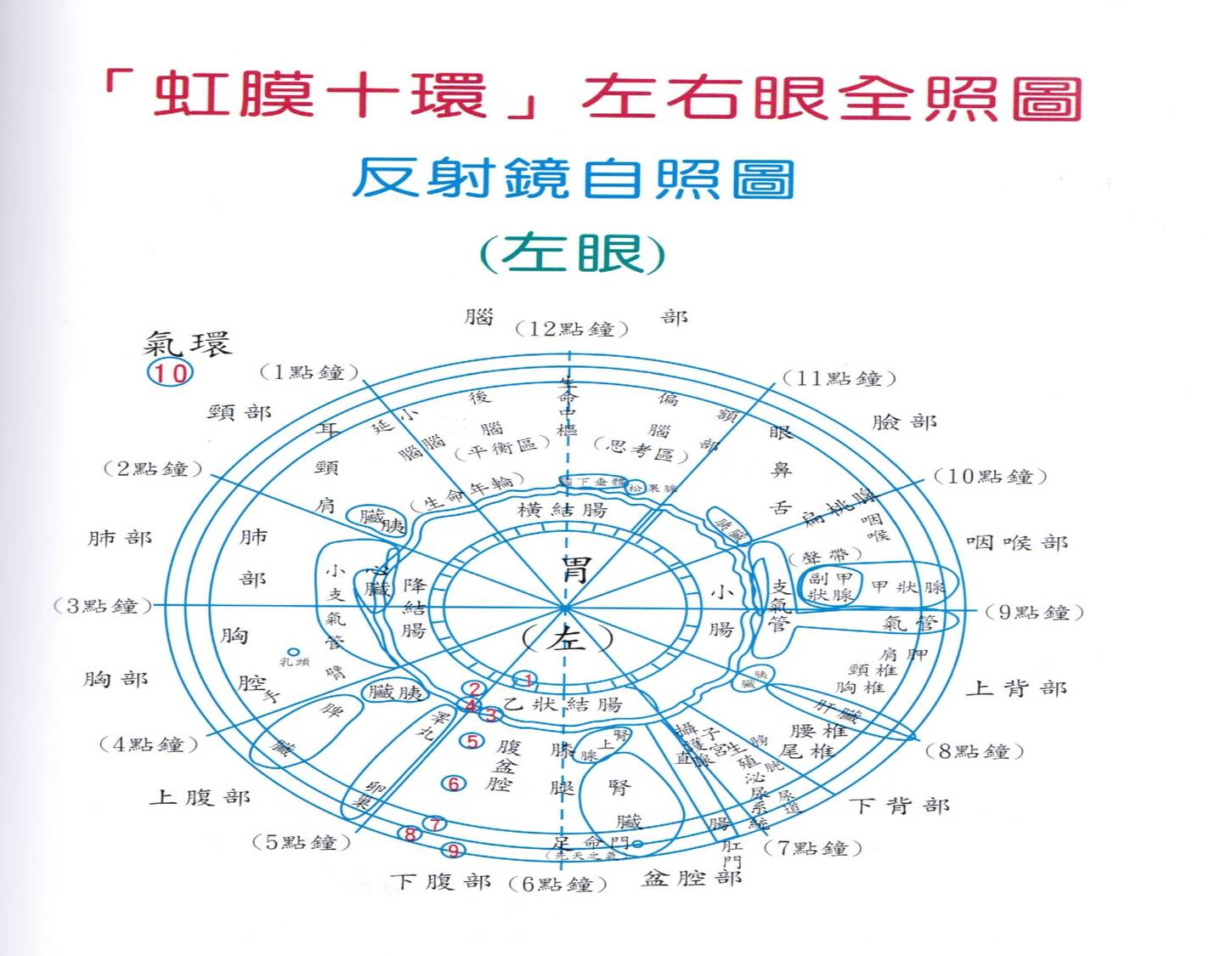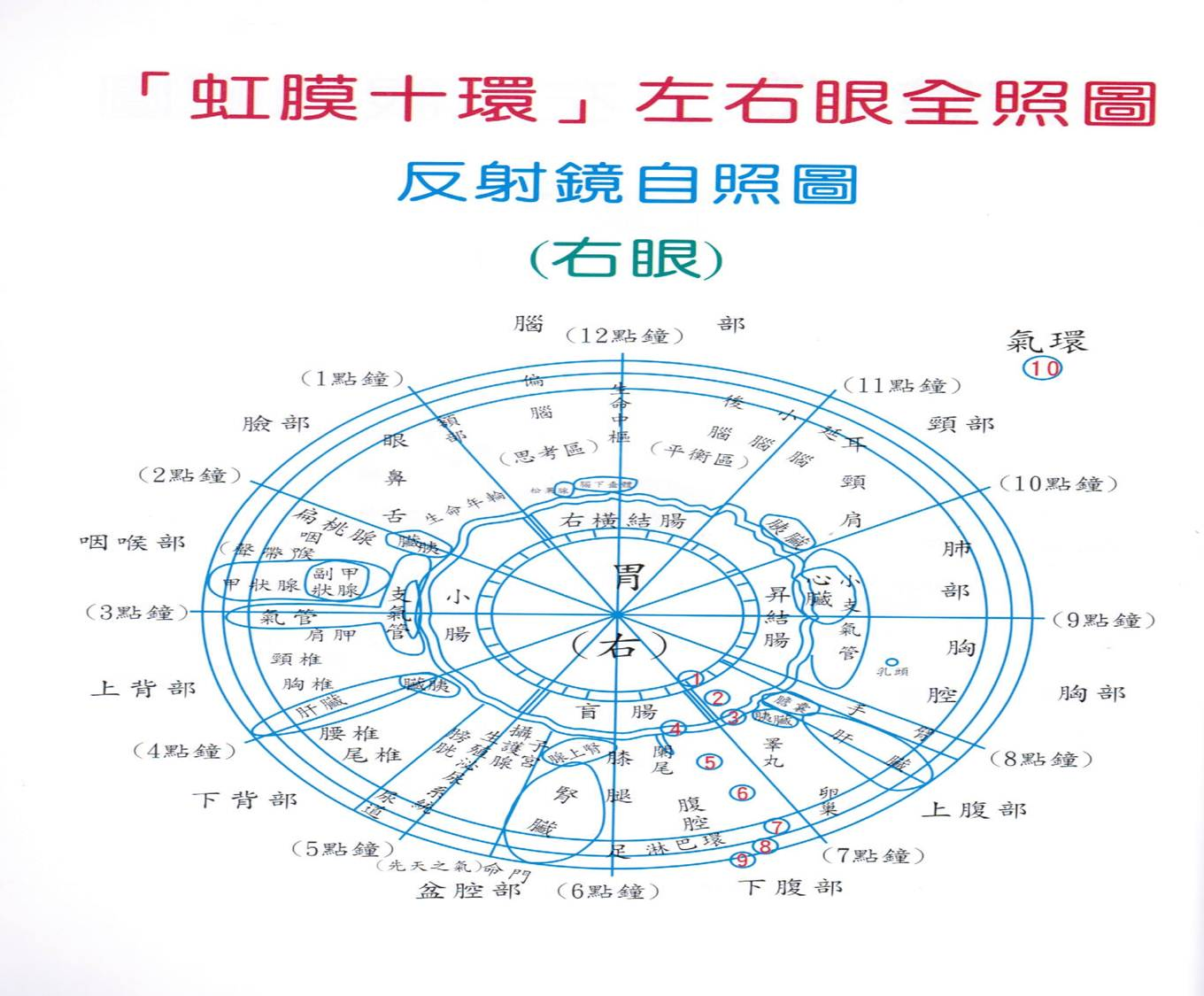 一個完美的「眼睛虹膜」,是光亮緊實沒有坑洞、沒有裂縫、沒有色素沉積、沒有斑塊、沒有變形扭曲、沒有異常現象,各部位都呈現出完美勻程、界線明顯、圓融的健健狀態。(見圖)